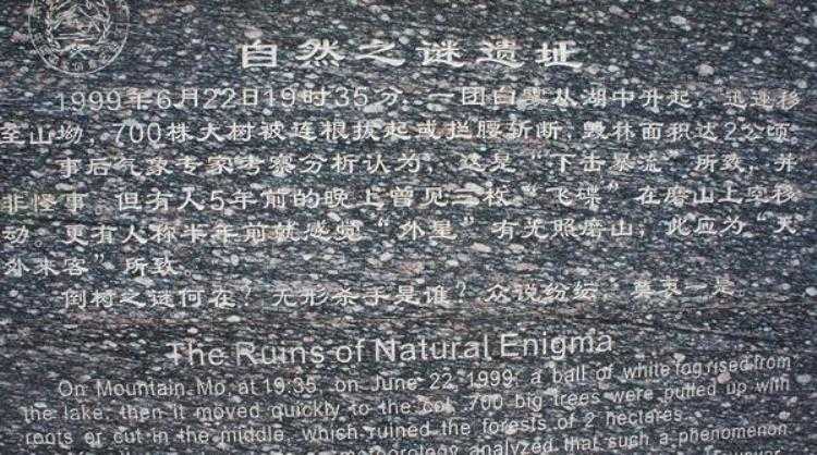 这和龙卷风说有些类似,但与龙卷风气流上升相反,这一股气流是几乎垂直向下的,是属于大气强对流的一种,比较罕见!欧阳自远认为,下击暴流是造成都溪林场树木大面积折断的主要原因,但这属于强气流运动,一般在折断树木的同时会将林下所积的落叶刮跑,但落叶层并没有被吹动的迹象,折断的树木也不符合辐射状倒地的场景