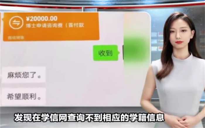 据了解,小珍是一名90后,研究生毕业,因为工作原因想要提高学历,今年2月份她在网络上刷短视频的时候看到了某个培训机构发布的广告,之后添加了对方的微信,聊天过程中对方表示只要12万元就可以帮助她申请某个高校的博士生学历,之后小珍分3次向对方转过去了全部费用,还收到了“博士生录取通知书”,谁知道9月份入学的时候才发现在学信网上查询不到学籍信息,在学校的博士生招生名单中也没有看到自己的名字,于是选择了报警。
