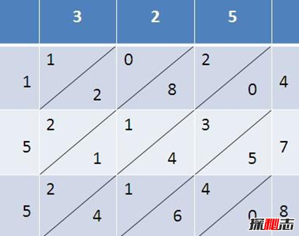 7、格子乘法(也称为直角正方形,筛子乘法,或印度教格)在历史上被许多不同的文化所使用,虽然长乘法比格法更流行,但也有一些人发现后者更易于使用。