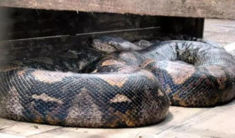 当我看到那蛇的时候就吓傻了,那蛇头如同拳头般大小,蛇的鼻子有点像猪鼻子,嘴巴两边平平的,眼珠子有点泛红,像是正在发怒的样子。体长约二点五米,身体最大的地方能装下两头刚出生的猪崽。此时此刻蛇的眼睛正死死的盯着我看。