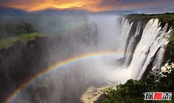 这座瀑布位于赞比亚和津巴布韦之间的边境上,宽度惊人,高度354英尺。这是一个令人惊奇的景象,无论是白天还是晚上,游客都可以看到瀑布水域上空形成的彩虹。
