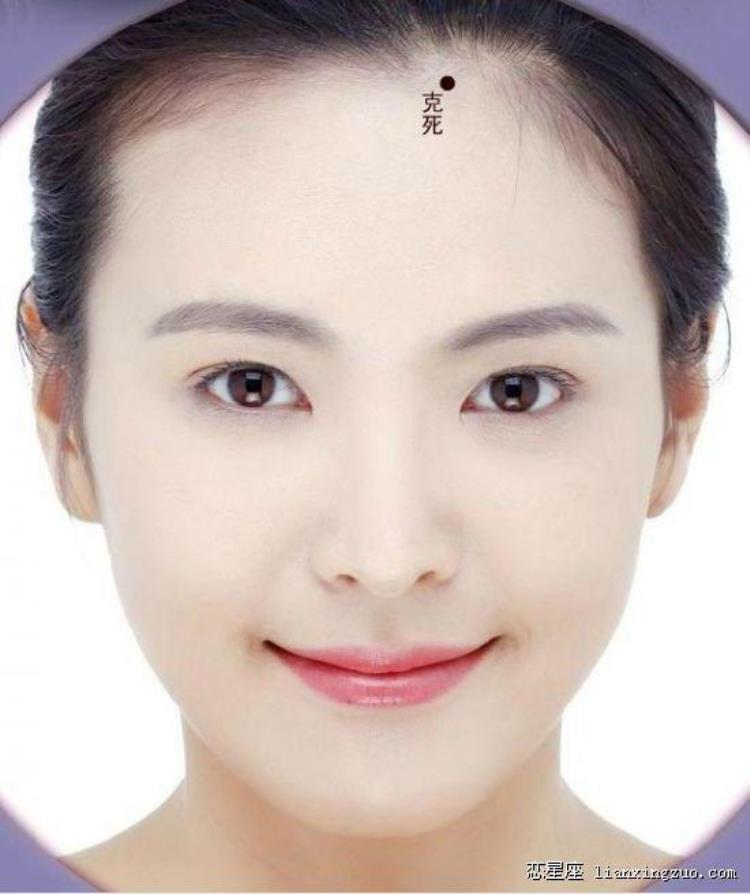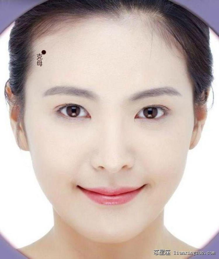 克母:女子右侧额头上角长有痣,相学中叫克母,长有克母痣的女子会对母亲的命运带来不好的影响,在命理中可能会对母亲不利。