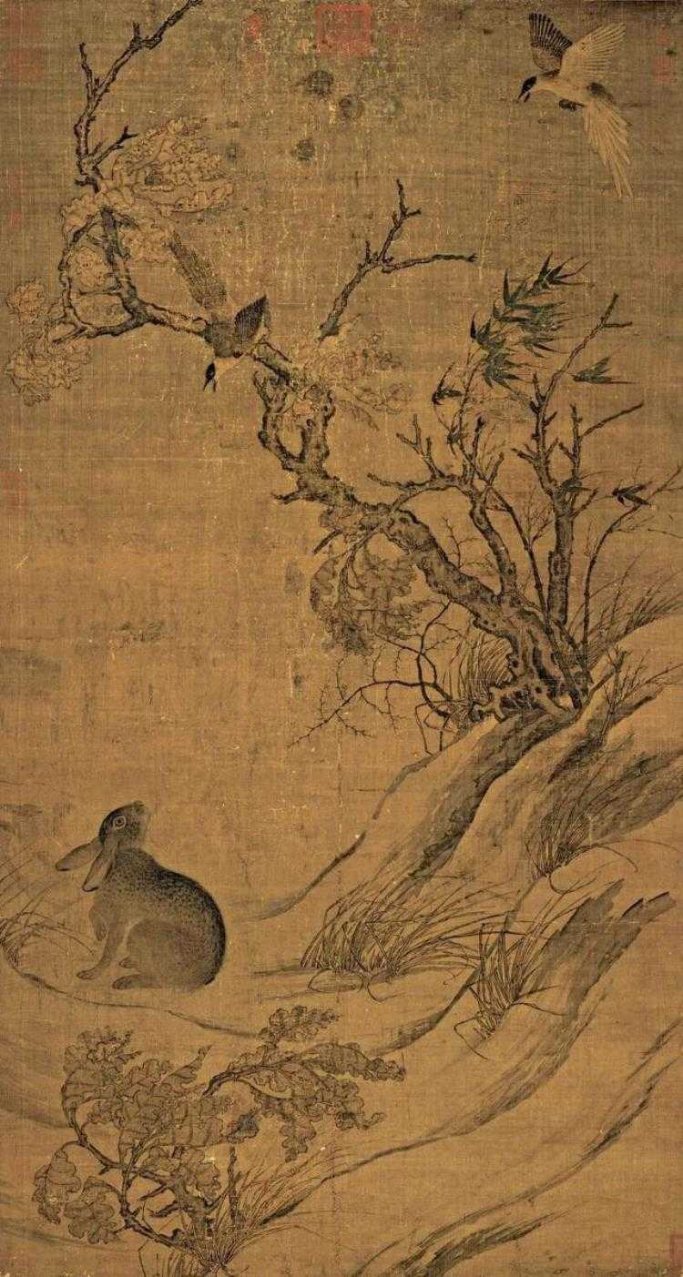 比如北宋时期崔白所画的《双喜图》,这幅画就充满了野逸的情趣,主体是一只兔子和一只喜鹊,两者一静一动,动静相生,着实很美。