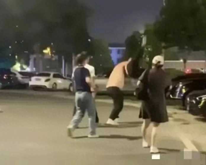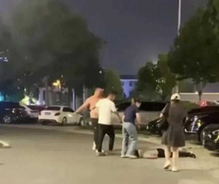其实事情的起因很简单,当天晚上光膀男子和穿着短袖的男子都喝醉了,两个走路都摇摇晃晃的,可是不知道怎么回事,两个人凑到了一起。