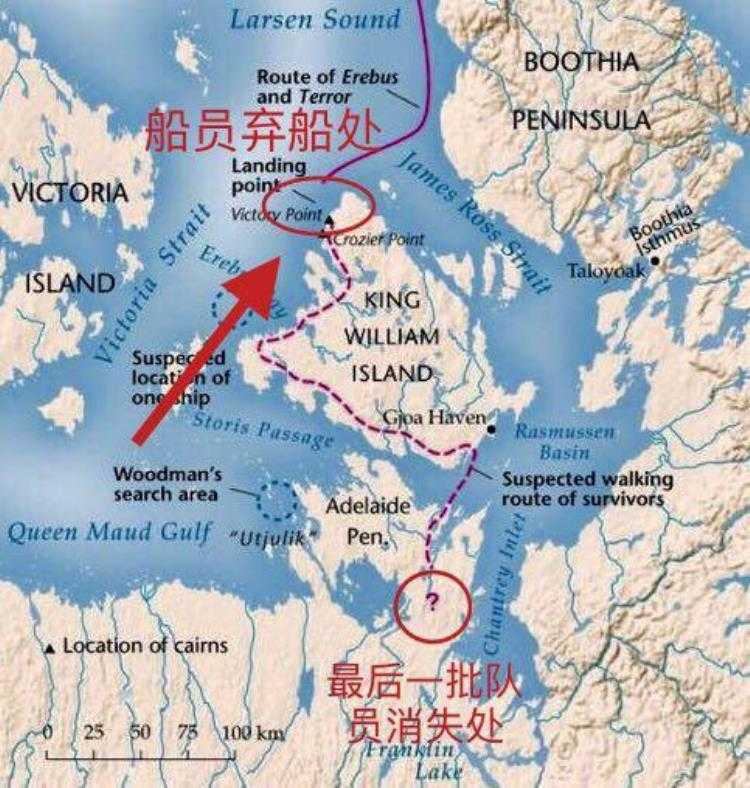 事实上也确是如此,剩余的几十人最终也没有走出冰原,直到后来遗骸被到河口狩猎的因纽特猎人所发现。