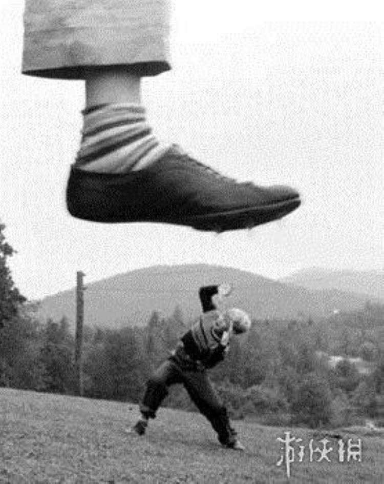 其实这不过是利用角度和景深,产生大小的差异。这个技巧至今仍然经常使用