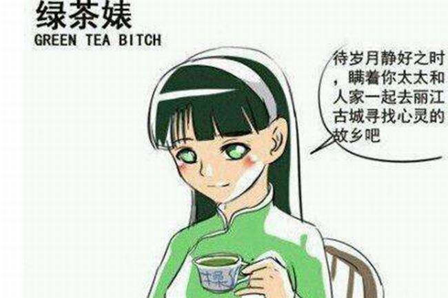 绿茶婊中的“绿茶”,就是表示清纯的外形,一般都是长发飘飘,看似素颜其实化了妆,“婊”则是指背地里做了一些很物质或糜烂的事情,而且心机很深。有点类似我们现在所说的“白莲花”,反正就是表里不一。