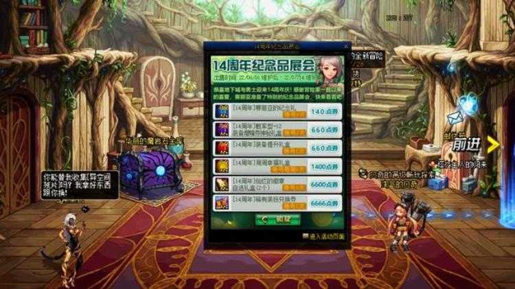 纪念品分别是:140点券的赛丽亚纪念礼;660点券的概率性 12增幅券,装备提升礼盒;1400点券的周周幸福礼盒,里面的 10增幅券还是14%的几率成功,太拉了;6600点券的自选灿烂徽章;6666点券的稀有装扮兑换券。性价比都很低。