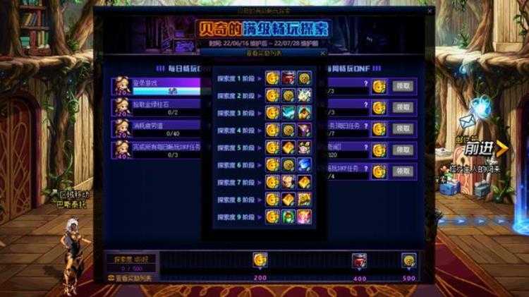 畅玩探索活动玩法,阶段性奖励主要有公会勋章和神器守护珠, 8增幅券,金绿柱石,先兆水晶,黄金书和神话自选礼盒。