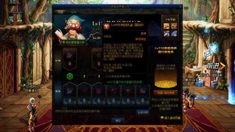 通行证,售价9900点券的战令,因为配合110版本,这个通行证主要是加速105级装备加速养成的,比较好的奖励是5级的自选史诗罐子,35级的装备等级转移券,等价于500个金绿柱石,以及其他等级的金绿柱石,想快速养成就需要考虑入手,佛系玩家不推荐,因为性价比不高。