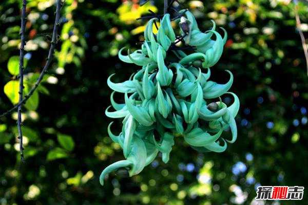绿玉藤是一种颜色特别的花朵,就像是带着冷光的感觉,整体还是比较迷人的,神秘的蓝绿色更是让很多人喜欢。