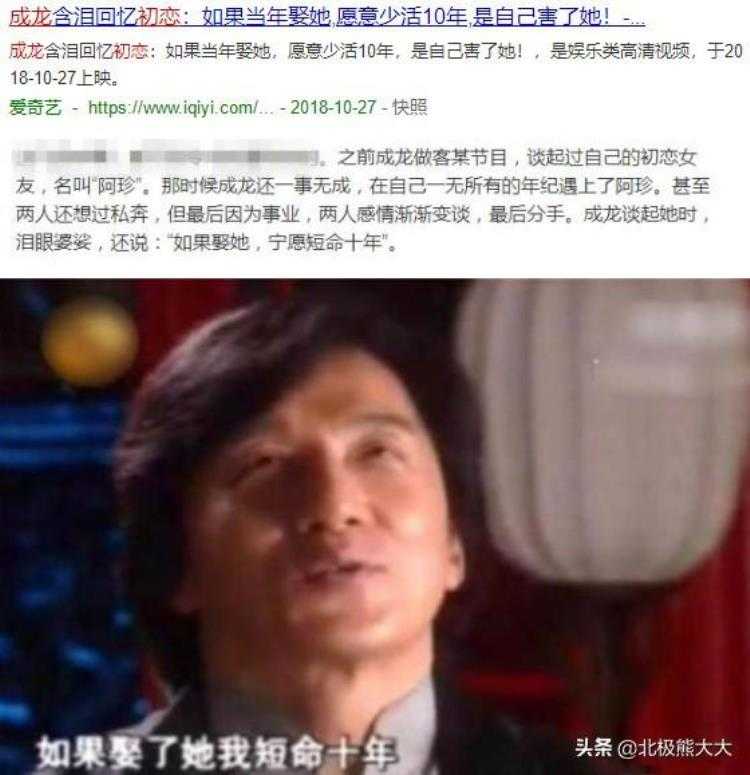 多年后,成龙已经功成名就,想要挽回,却无济于事了,他含泪回忆初恋感慨道:“如果当年娶她,愿意少活十年。”