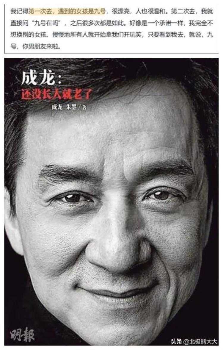 在自传中,成龙表示,自己第一次去,遇到的女孩是九号。