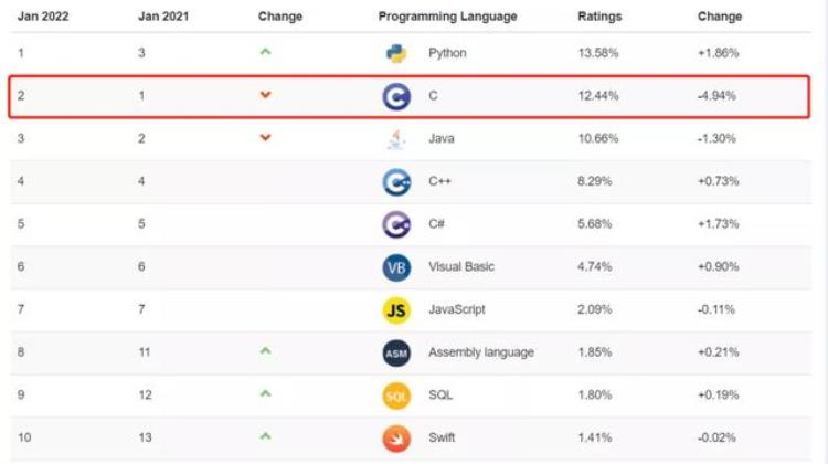C语言从诞生到现在,已经经历了半个多世纪,依然受到开发者的青睐,并称为广大工程师的入门首选语言,并且在TIOBE编程语言榜上都是前三位置(很多时候都是老大位置)。下图就是TIOBE最新编程语言排行榜,也可以通过下面的网址进行查看https://www.tiobe.com/tiobe-index/。