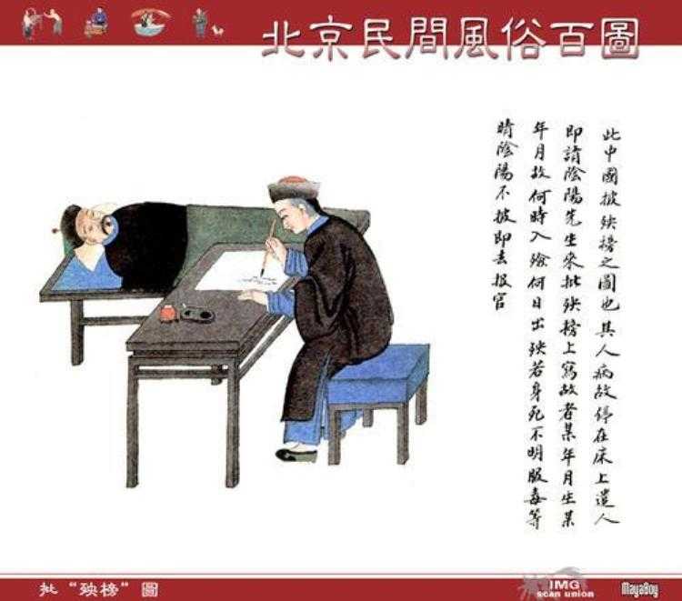 按当时民间礼俗,长辈逝世,先请阴阳先生选择入殓的时辰,称“山人批书”。除了选择时辰之外,先生还会计算丧家的忌讳,比如某特定属相或某特定生辰的亲属不能参加入殓仪式,《红楼梦》第十三回对山人批书做了描述。秦可卿死,贾珍便吩咐去请钦天监阴阳司来择日,择准停灵七七四十九日,三日后开丧送讣闻。范祖述《杭俗遗风》载:“凡人逝世,先叫阴阳门,眷名为山人批书。批书者,选择入殓之时辰,及月建的呼之官避者,然后以手折开写亲族至友姓名住址,遣夫走报。”