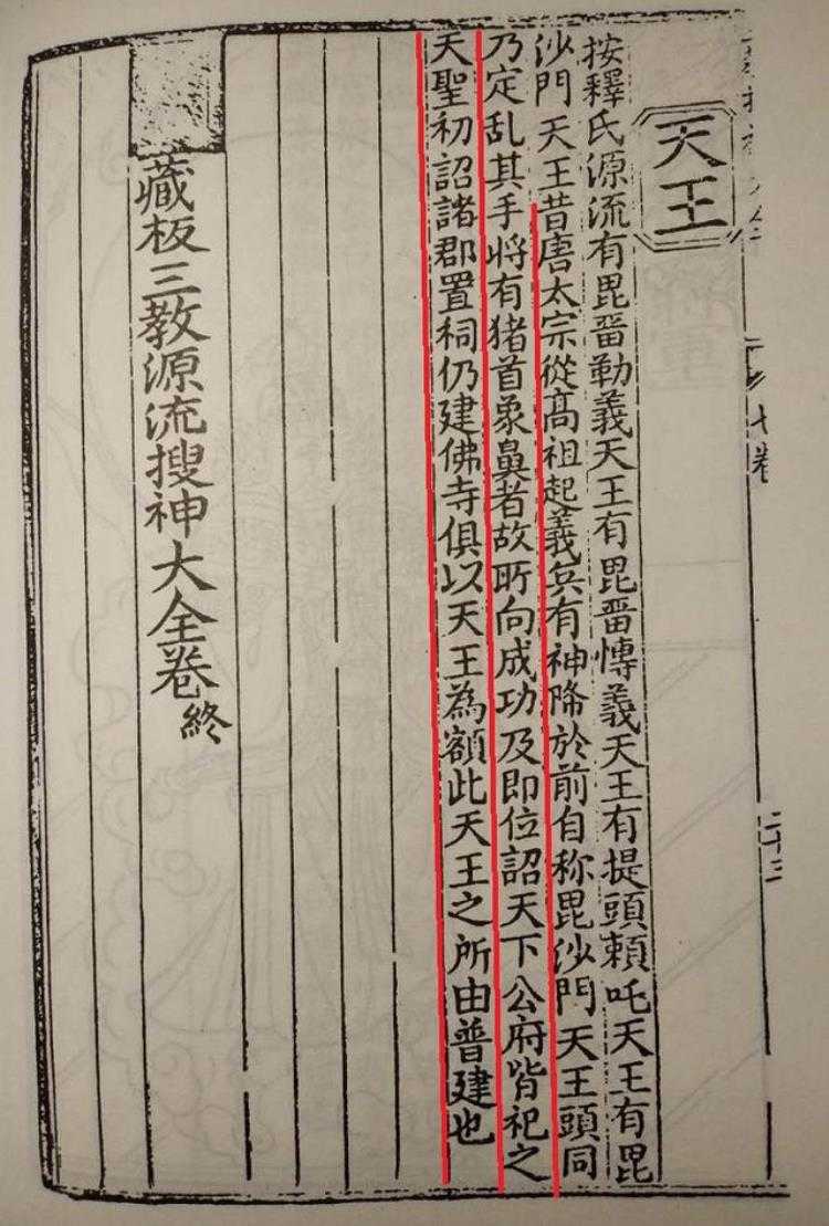 这并非不可能,一直有传说李家起兵时,毗沙门现于太原府邸;又说毗沙门尝助太宗底定宇内。《三教源流搜神大全》有“天王”条,说: