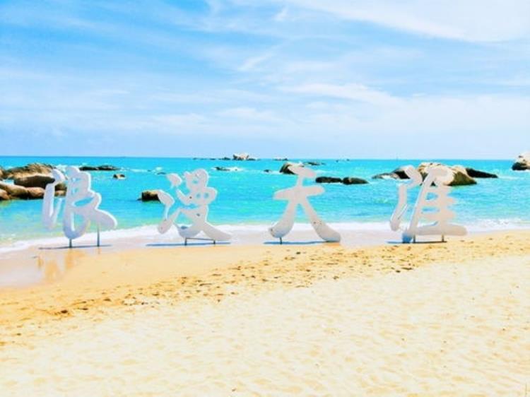 月牙形的海湾长约2公里,辽阔的海面晶莹如镜,阳光、海水、沙滩、椰树、青山构成了一幅美丽的热带风光图画。