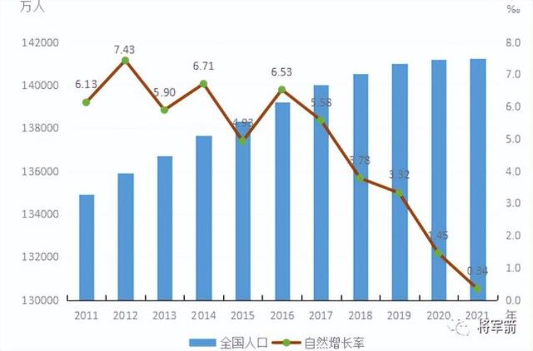 截至2021年底,全国人口为14.126亿,同比增加48万,人口自然增长率仅为0.34‰。