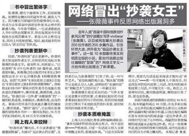 秦简曾经凭借一本《庶女有毒》成为小有名气的女频作家,2016年同名电视剧播出的时候,更是风头无两,不过随后却被曝出抄袭200多本小说,众多编剧、作者纷纷发声指责。其实,秦简并非抄袭最厉害的人,还有位作家曾抄袭过600多位作者和700多篇作品,范围从《一千零一夜》到地震祭文,是当之无愧的“抄袭女王”。