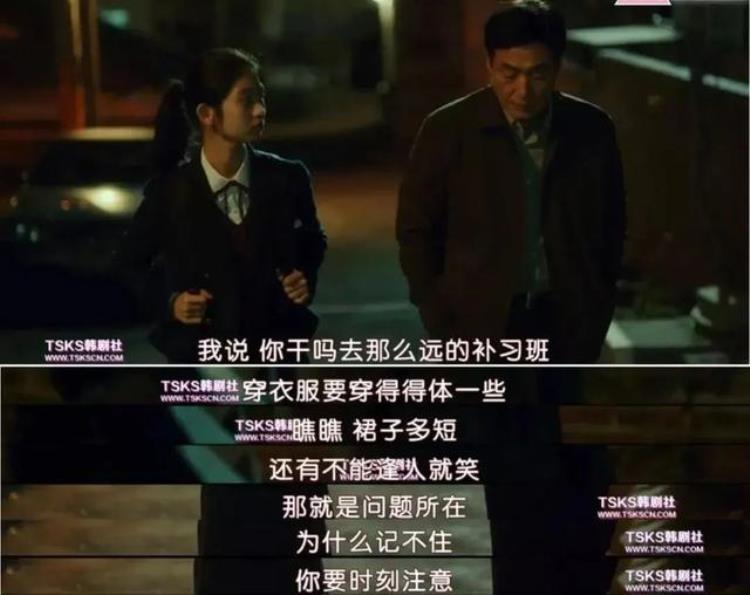 智英去远一点的补习班补习被尾随,父亲说她“裙子太短”、“逢人就笑”。