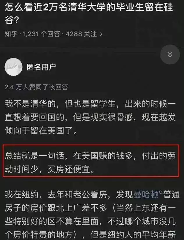 如果是毕业于顶尖名校的学生,他们有可能在美国落户,而且可以预料到,有很多清华学子会为了子女教育而选择留在美国。