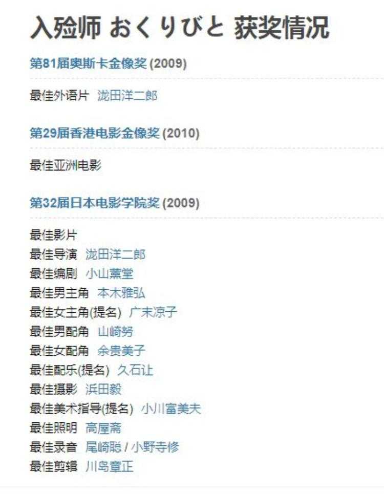 最近看了08年的一部老电影《入殓师》,其实看片名就一眼可见这是部很有深度的影片,主题是关乎死亡,相应的蕴含了生命与人生的意义,具有十分深刻的教育意义。该片曾获第32届蒙特利尔国际电影节最高大奖、第81届奥斯卡金像奖最佳外语片奖、第29届香港电影金像奖最佳亚洲电影等奖项。