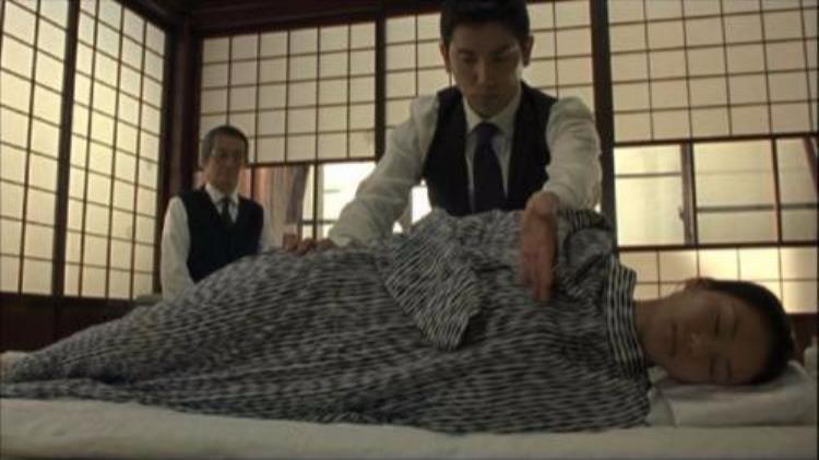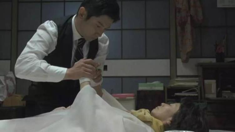 正在这时,小林接到电话,开澡堂的婆婆去世了,需要他过去做入殓仪式,妻子同他一起过去。