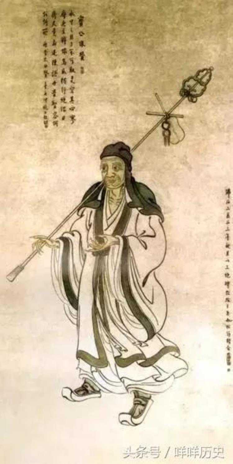 宝志禅师居无定所,来无影去无踪,饮食不定时,头发数寸长,光着脚丫子行走在大街小巷。手里边拿着一把锡杖挂着一些剪刀、镜子、布条之类的小物件。