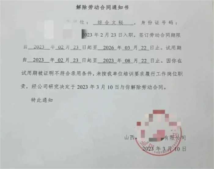员工在试用期内被辞退 辞退理由太过离谱(辞退员工)