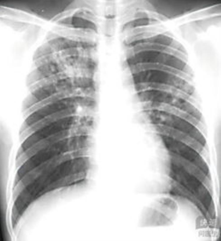 2.血行播散型肺结核:急性粟粒性肺结核,全肺均一结节(最严重)