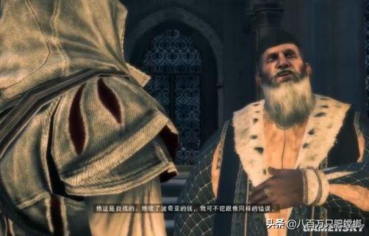 从这里开始艾吉奥就留了胡子,年轻从此一去不复返刺客信条2 虚荣之火“弗利之战”与“虚荣之火”原本是两个DLC,后来被融进了游戏流程中(即倒数第三与倒数第二章)。