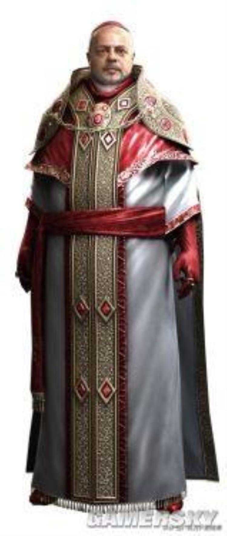 成为教皇后的服饰 在罗德里戈侍奉教皇西克斯图斯四世时,作为圣殿骑士团大师,他渴望将整个意大利纳入圣殿骑士的势力范围。为了达到这个目的,他计划将意大利几个主要城市的领袖赶下台,并扶持他所安插的人。在实施这个宏大的计划过程中,乔瓦尼·奥迪托雷发现了一点端倪。(《血系》剧情)