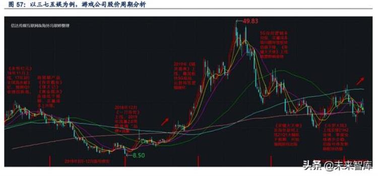 4. 投资观点:拥抱版号常态化戴维斯双击,游戏出海系核心催化游戏行业已处于人口红利后周期,供给侧改革更加剧行业增速放缓,游戏出海成为行业主 要增量。最后我们以龙头公司三七互娱、吉比特股价为例,对游戏公司股价周期进行分析:
