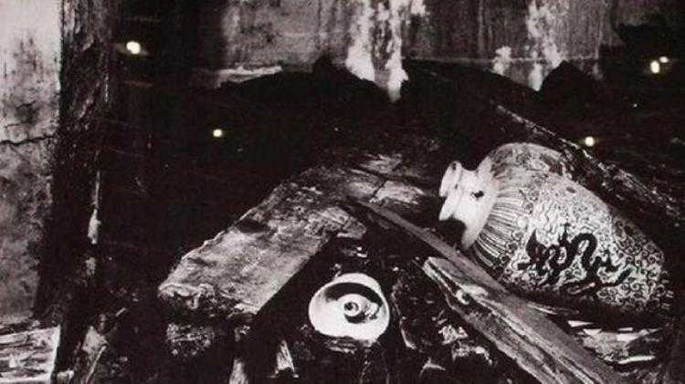 考古专家刚刚把地宫入口的一块砖敲下时,墓中就冒出了一股黑烟。这一股黑烟味道特别浓,气味非常的刺鼻,既能闻到尸体腐朽发出的臭味,还能闻到水银的味道,而且闻了以后还有一种恶心的感觉。当黑烟散尽以后,考古学家继续进行挖掘。