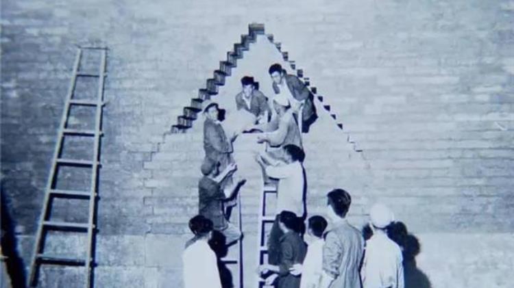 在勘查定陵的前夕,天气突然大变,暴雨倾盆而下,连下了两个多月才停。在定陵周围的城砖上有一处出现了裂痕,考古队认为这里可能就是地宫入口。果不其然,在挖掘工作开展没多久后就看到了石砖上刻有“隧道门”的字样。