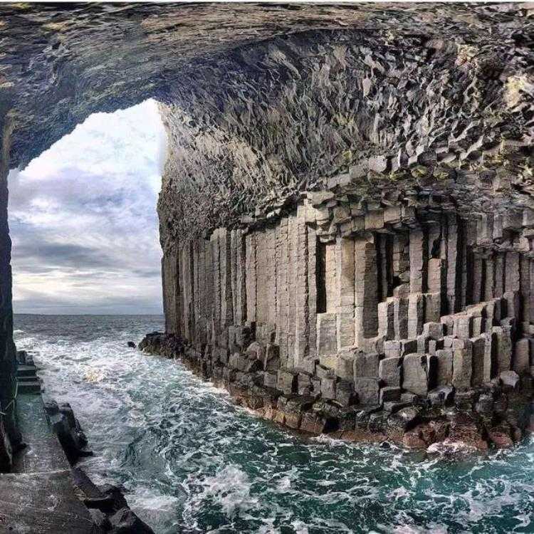 位于苏格兰西部无人居住的斯塔法岛上,纵深约75米,顶高约20米。它是由六边形玄武岩方块搭建而成。玄武岩从火山喷发而出,熔岩四溢。当岩浆快速冷凝的时候,便会形成规则的六方柱状节理。