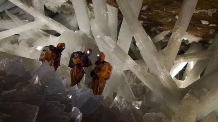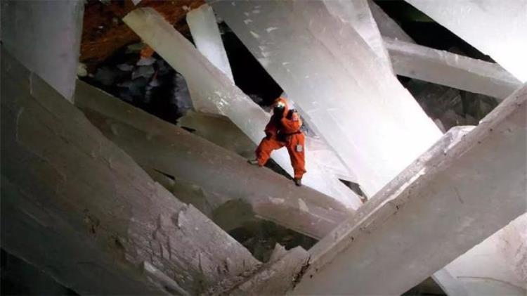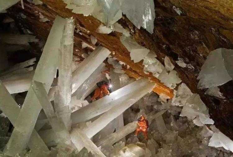 这里的岩壁上到处都是一簇簇完美无暇的晶体,长度甚至超过10米,但是水晶洞中的晶体并非水晶,而是石膏。通常情况下石膏想要达到超过两层楼高需要长达一百万年,目前这里的石膏仍然以极其缓慢的速度在增长。