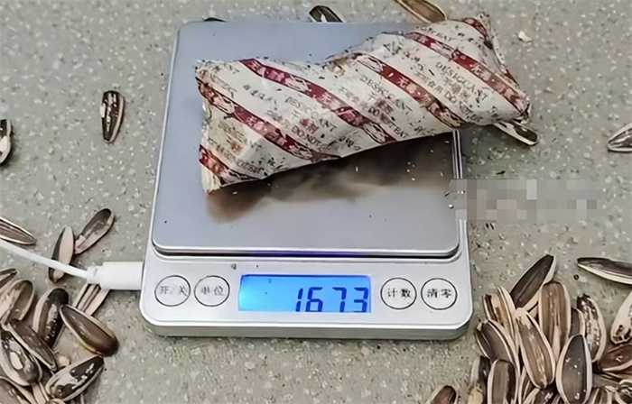 近日,位于黑龙江一女子在网上发布视频表示,自己在网上买的瓜子,说是一袋500克,到手只有472克,更让人注意的是,在这包瓜子之中还有一个像铁块一般的干燥剂,单单一个干燥剂就重167克。
