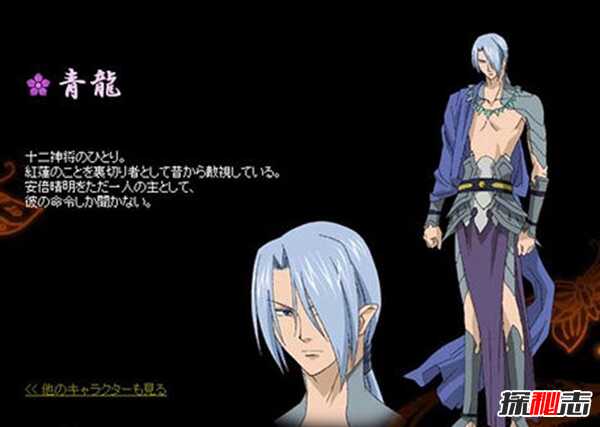 青龙,出自日本动漫《少年阴阳师》中的角色。十二神将之木将,吉将,司掌福助。十二神将之木将,吉将,司掌福助。因为名字里有“龙”这个字,同时也有水的属性。个性刚直、顽强,有一双犀利的深蓝色眼眸,一头蓝色长发随性地绑在颈后。因为红莲触犯过天条,故将视红莲为叛徒,两人水火不容,处于敌对状态,使用的武器是巨大的镰刀。