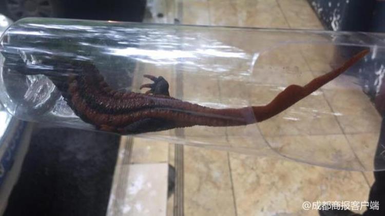 据了解,蝾螈身体短小,有四条腿,皮肤潮湿,体长大约在10-15厘米,大都有明亮的色彩和显眼的模样。中国境内有大蝾螈分布,其体型最大,体长可达1.5米。 蝾螈是一种有尾两栖动物,体形和蜥蜴相似,但体表没有鳞。“它们也是良好的观赏动物,有些被人们当成宠物来养。”刘小欢告诉记者,宜宾天然水域中没有蝾螈分布,疑为外来物种。