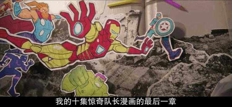 如剧集最初出现的定格动画,利用精美的卡通纸片人,及文具制造出的丰富特效,为我们生动还原了三年前复联成员对抗灭霸的终局之战。