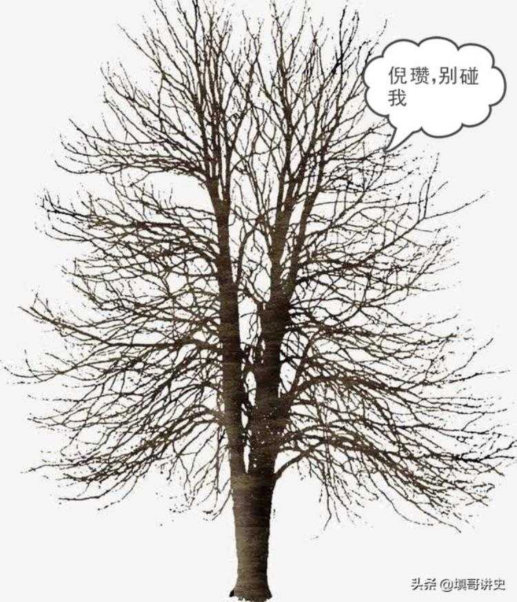 为什么呢?随着梧桐树的成长,倪瓒老是觉得梧桐树不干净,所以也让仆人每天不停的清洗啊。梧桐树的树皮都给洗烂了。没多久就挂了。