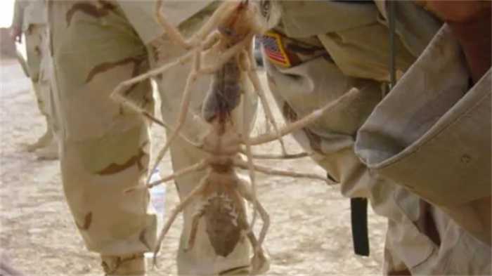 在2003年,一张引人注目的骆驼蜘蛛照片开始在网络上疯传。照片中展现着一只“巨大蜘蛛”,士兵们惊讶地发现这种“蜘蛛”长约40厘米,令许多蜘蛛恐惧症患者忍不住惊呼:难以想象!