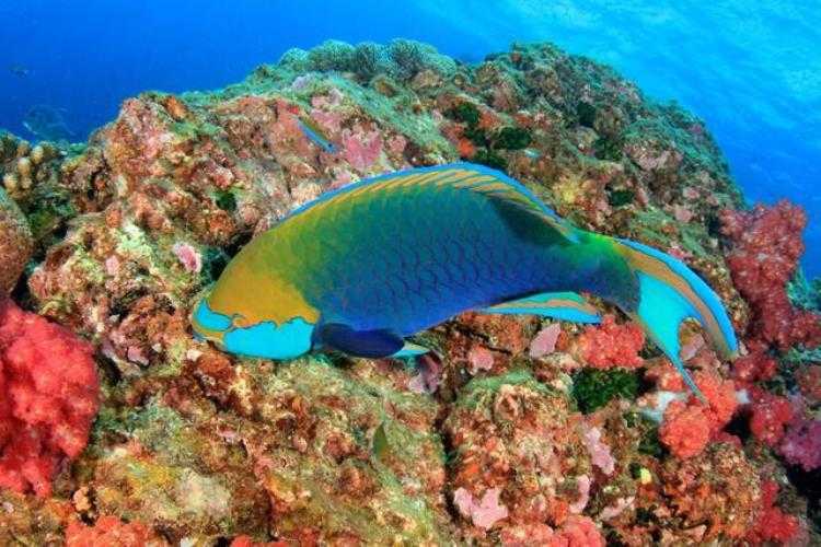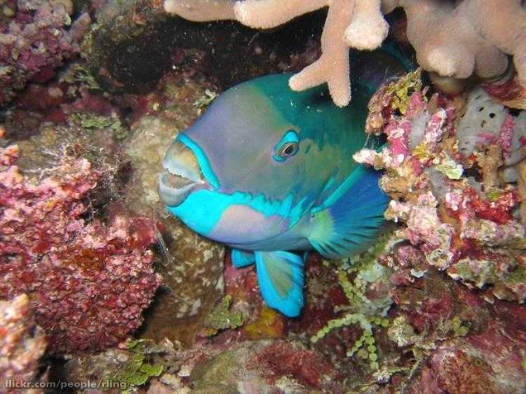 鹦嘴鱼因色彩绚丽,嘴型酷似鹦鹉而得名