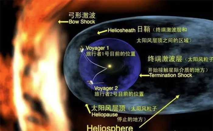 太阳风和星际介质接触的地方被称为终端激波层,从终端激波层开始,太阳风持续被星际介质削弱,在日球层顶完全停止,太阳风和星际介质共同作用的这片区域被称为日鞘。