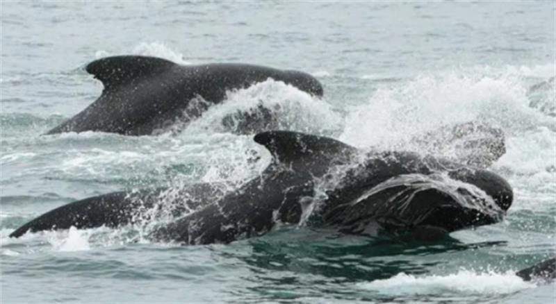 虽然虎鲸和领航鲸都属于海豚科,它们之间的关系并非一成不变。领航鲸和虎鲸的互动通常是复杂的,有时甚至包括追逐和攻击。领航鲸群体中可能存在一些个体,受到虎鲸的攻击,因此整个群体形成条件反射,只要看到虎鲸,就会采取驱赶措施。这种反捕食策略可能有助于保护领航鲸免受虎鲸的威胁,尤其是在数量优势明显的情况下。
