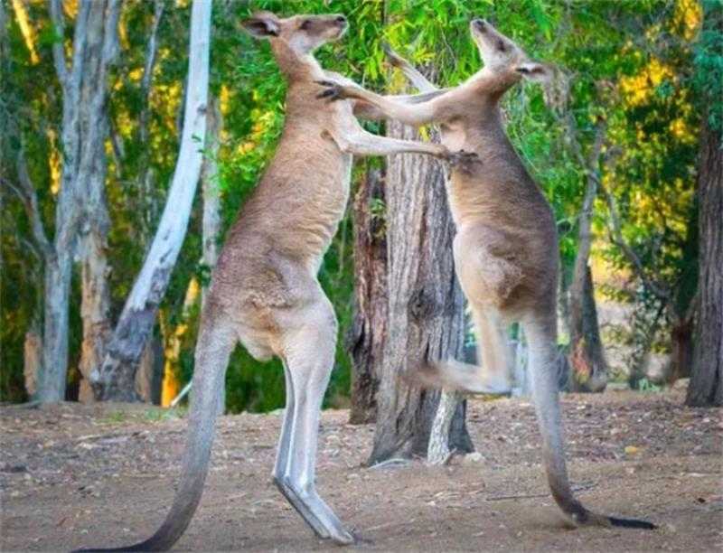 袋鼠擅长身体腾空,尾巴支撑地面,并用后肢踢人,这个招式加上它庞大的体型,很容易将一个成年人踢倒。