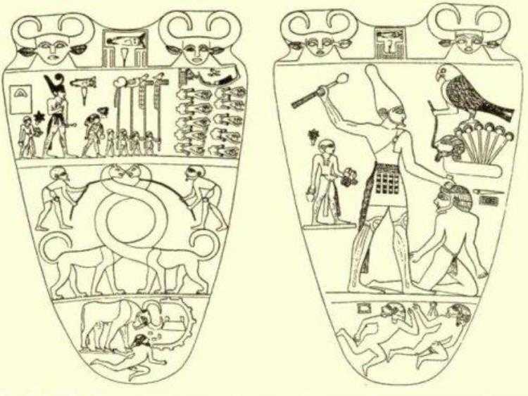 还有一块石板也被"僵尸粉"看作僵尸存在的证据,石板的一面刻画的是:古埃及最早的国王纳美尔重击跪着的敌人;另一面是:国王率游行队伍观看一堆被斩首者的尸体(这些被斩首者可能就是僵尸)。"纳美尔"意为"鯰鱼——凿子",而石板上确实出现了这两样东西。因此,这块石板被"僵尸粉"解读为:为了庆祝制服僵尸,纳美尔用手抓住一条尼罗河大鲶鱼的尾巴,把大鲶鱼当作武器击昏僵尸,再用凿子取下僵尸的头颅。