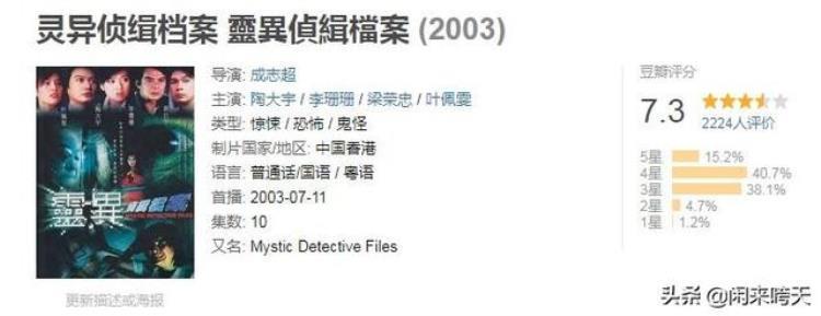 而在《刑事侦缉档案》最火的时候,正逢灵异题材热潮,所以用原班人马推出了一部小巧精悍的《灵异侦缉档案》。