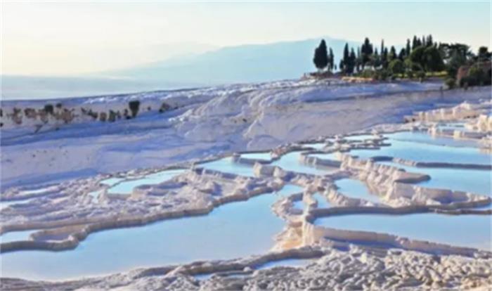 被形容为一个巨大瀑布的石化状态。这里的石灰石台阶延伸到如画的西南部山谷边缘,成为土耳其最受欢迎的景点之一。然而,这些美丽的台阶也因为其美丽而吸引了无数游客。人们络绎不绝地来到这里,欣赏这些独特的石灰岩景观。